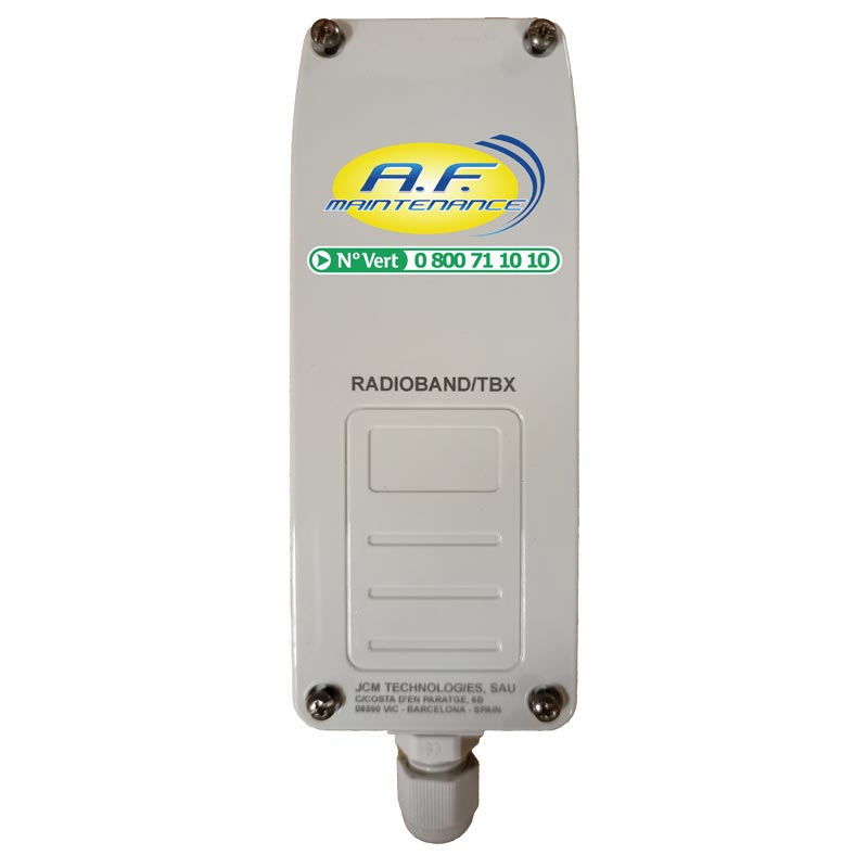 Partie d’un kit comprenant un émetteur et un récepteur permettant de faire communiquer sans fil (via les ondes radio) une centrale de commande et une barre palpeuse de sécurité.